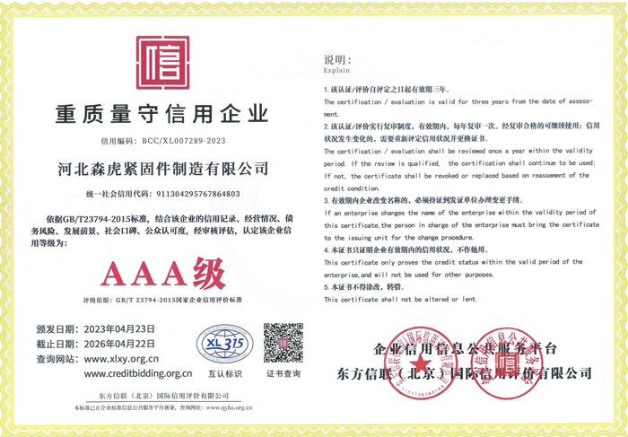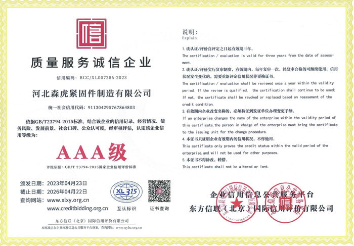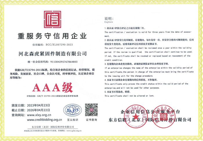 歡迎新老客戶來電垂詢,來廠參觀考察,洽談合作河北森虎緊固件制造有限公司